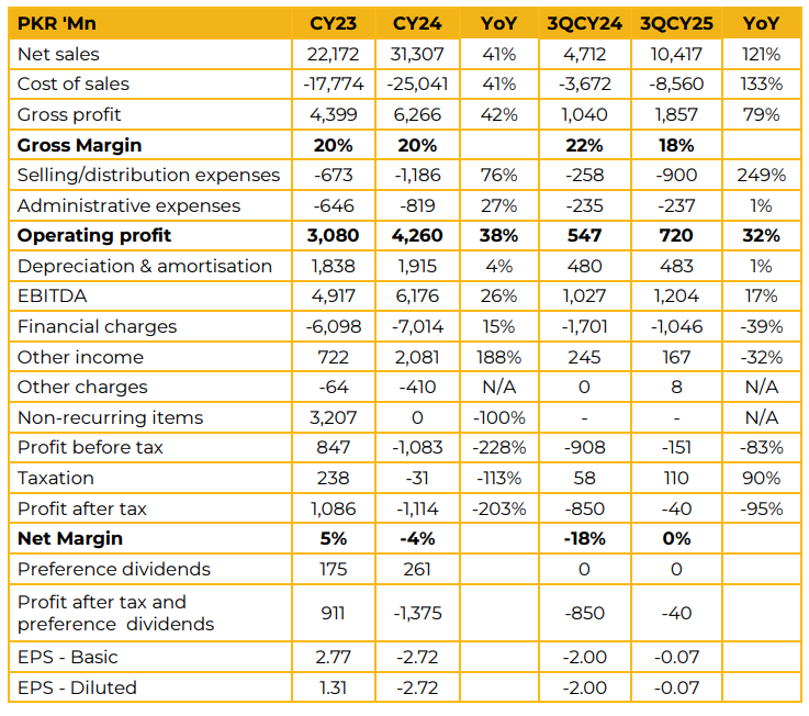 Agritech Limited (AGL) reported loss per share of PKR 2.72 for CY24, compared to earnings per share of PKR 2.77 in CY23. Furthermore, in 3QCY25, the company loss earnings per share of PKR 0.07, compared to loss per share of PKR 2.00 in the same period last year (SPLY).