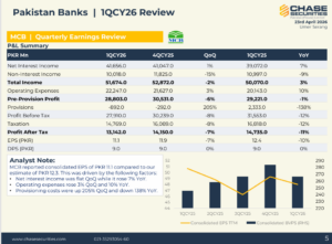 Corporate Briefings National Bank of Pakistan National Bank of Pakistan reported earnings per share of PKR 40.38 in CY25, up 220% Read More April 28, 2026