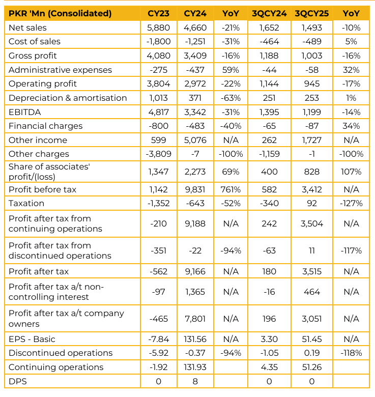 Furthermore, in 3QCY25, the company reported earnings per share of PKR 51.26, compared to earnings per share of PKR 4.35 in the same period last year (SPLY).
