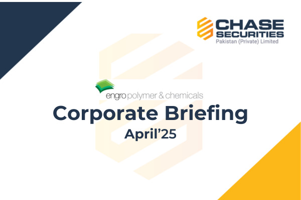 Disclaimer: This report has been prepared by Chase Securities Pakistan (Private) Limited and is provided for information purposes only. Under no circumstances, this is to be used or considered as an offer to sell or solicitation or any offer to buy. While reasonable care has been taken to ensure that the information contained in this report is not untrue or misleading at the time of its publication, Chase Securities makes no representation as to its accuracy or completeness and it should not be relied upon as such. From time to time, Chase Securities and/or any of its officers or directors may, as permitted by applicable laws, have a position, or otherwise be interested in any transaction, in any securities directly or indirectly subject of this report Chase Securities as a firm may have business relationships, including investment banking relationships with the companies referred to in this report This report is provided only for the information of professional advisers who are expected to make their own investment decisions without undue reliance on this report and Chase Securities accepts no responsibility whatsoever for any direct or indirect consequential loss arising from any use of this report or its contents At the same time, it should be noted that investments in capital markets are also subject to market risks This report may not be reproduced, distributed or published by any recipient for any purpose.