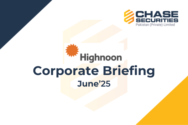 Disclaimer: This report has been prepared by Chase Securities Pakistan (Private) Limited and is provided for information purposes only. Under no circumstances, this is to be used or considered as an offer to sell or solicitation or any offer to buy. While reasonable care has been taken to ensure that the information contained in this report is not untrue or misleading at the time of its publication, Chase Securities makes no representation as to its accuracy or completeness and it should not be relied upon as such. From time to time, Chase Securities and/or any of its officers or directors may, as permitted by applicable laws, have a position, or otherwise be interested in any transaction, in any securities directly or indirectly subject of this report Chase Securities as a firm may have business relationships, including investment banking relationships with the companies referred to in this report This report is provided only for the information of professional advisers who are expected to make their own investment decisions without undue reliance on this report and Chase Securities accepts no responsibility whatsoever for any direct or indirect consequential loss arising from any use of this report or its contents At the same time, it should be noted that investments in capital markets are also subject to market risks This report may not be reproduced, distributed or published by any recipient for any purpose.