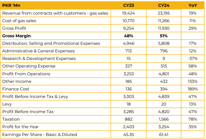 Management attributed this topline expansion to both price adjustments and volumetric growth. Group net revenue for the year reached PKR 24.63 billion. During CY24, the company launched 17 new products—11 in the chronic healthcare segment and six in acute care— contributing to the overall growth. The gross profit margin improved to 51% in CY24, up from 48% in the previous year.