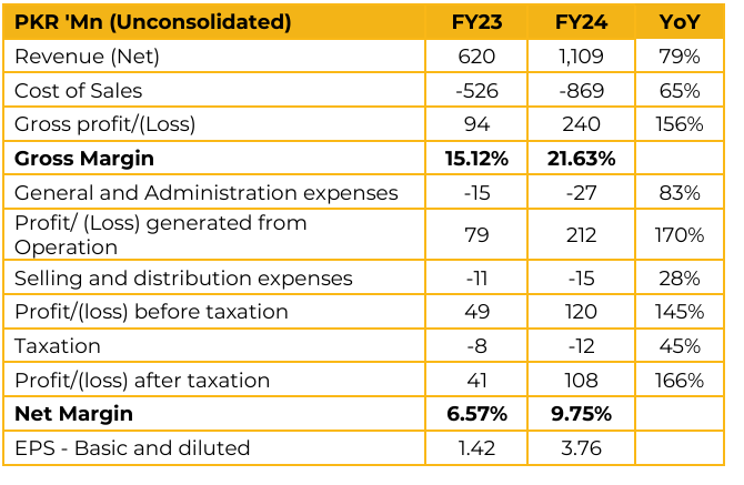 Mandviwala Mauser Plastic Industries Limited recorded earnings per share of PKR 3.76 in FY24, as compared to earning per share of PKR 1.42 in FY23. Production began in July 2020 with 210-liter plastic drums as the main product. In 2023, the company added a 260-liter product and has since introduced more.