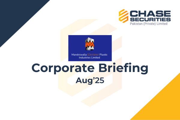 Disclaimer: This report has been prepared by Chase Securities Pakistan (Private) Limited and is provided for information purposes only. Under no circumstances, this is to be used or considered as an offer to sell or solicitation or any offer to buy. While reasonable care has been taken to ensure that the information contained in this report is not untrue or misleading at the time of its publication, Chase Securities makes no representation as to its accuracy or completeness and it should not be relied upon as such. From time to time, Chase Securities and/or any of its officers or directors may, as permitted by applicable laws, have a position, or otherwise be interested in any transaction, in any securities directly or indirectly subject of this report Chase Securities as a firm may have business relationships, including investment banking relationships with the companies referred to in this report This report is provided only for the information of professional advisers who are expected to make their own investment decisions without undue reliance on this report and Chase Securities accepts no responsibility whatsoever for any direct or indirect consequential loss arising from any use of this report or its contents At the same time, it should be noted that investments in capital markets are also subject to market risks This report may not be reproduced, distributed or published by any recipient for any purpose.