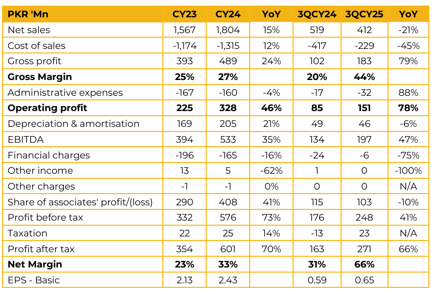 Secure Logistics-Trax Group Limited (SLGL) reported earnings per share of PKR 2.43 for CY24, compared to earnings per share of PKR 2.13 in CY23. Furthermore, in 3QCY25, the company reported earnings per share of PKR 0.65, compared to earnings per share of PKR 0.59 in the same period last year (SPLY). Trax is experiencing significant volume growth, with daily deliveries increasing from 20,000 in mid-2025 to 42,000–45,000 currently. Management has set an ambitious target of reaching 100,000 daily deliveries by end of CY26. The company currently operates 170–180 commercial vehicles and plans to expand the fleet to 284+ vehicles by end-2026.