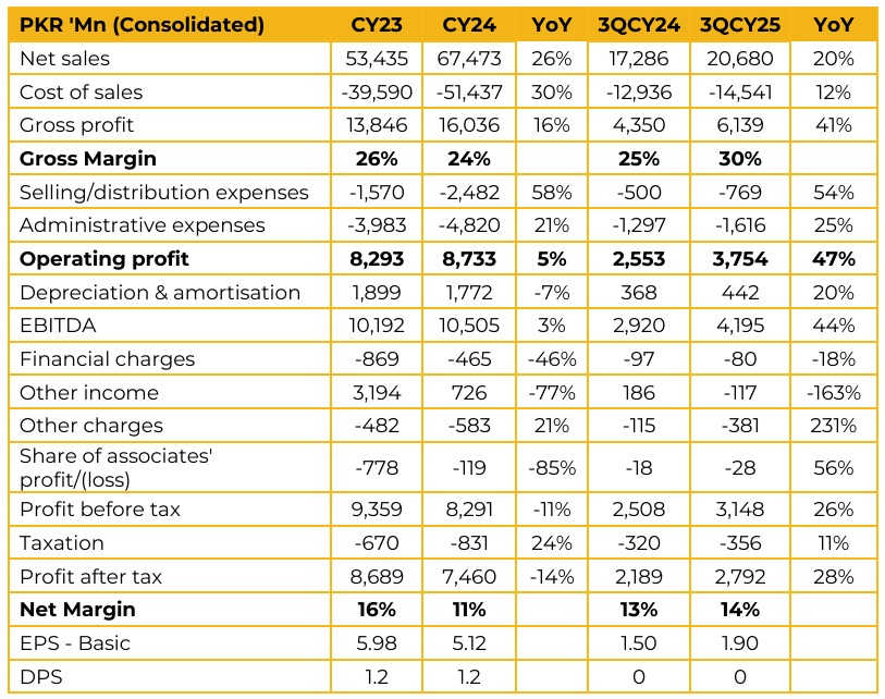 Systems Limited (SYS) reported Consolidated earnings per share of PKR 5.12 for CY24, compared to earnings per share of PKR 5.98 in CY23. Furthermore, in 3QCY25, the company reported earnings per share of PKR 1.90, compared to earnings per share of PKR 1.50 in the same period last year (SPLY).