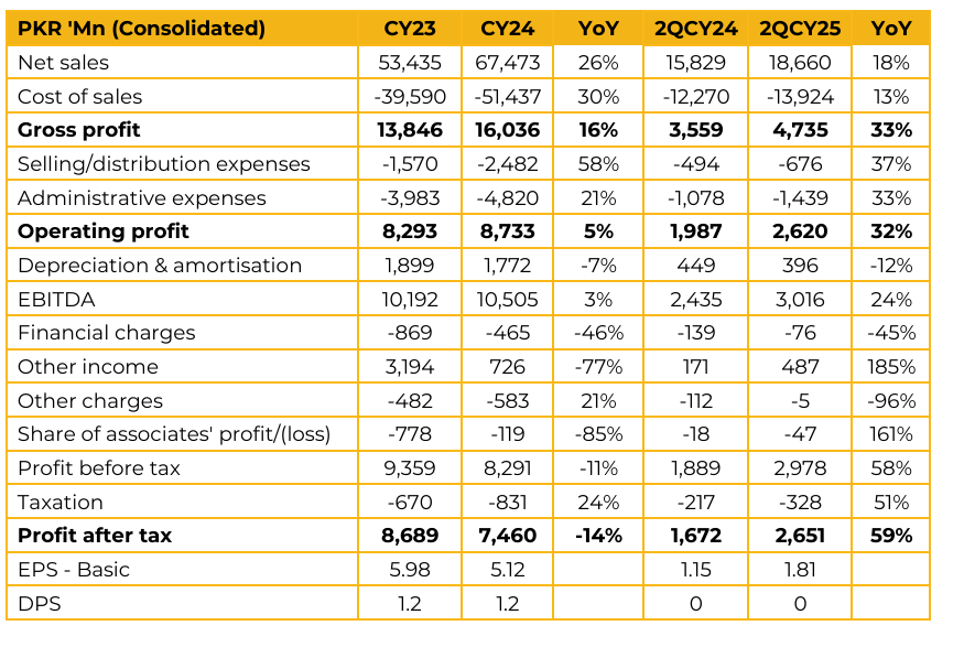 Systems Limited recorded earnings per share of PKR 5.12 in CY24, as compared to earning per share of PKR 5.98 in CY23. In 2QCY25, the company reported earnings per share of PKR 1.81, as compared to earnings per share of PKR 1.15 in 2QCY24. Systems Limited reported $242 million in annual revenue for 2024 and $130.97 million in the first half of the current year, with an EBITDA of $21 million for the same period.