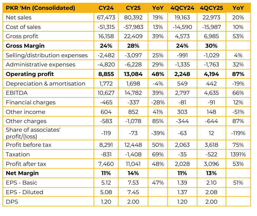 Systems Limited (SYS) reported Consolidated earnings per share of PKR 7.45 for CY25, compared to PKR 5.08 in CY24. Furthermore, in 4QCY25, the company reported earnings per share of PKR 2.08, compared to earnings per share of PKR 1.37 in the same period last year (SPLY).